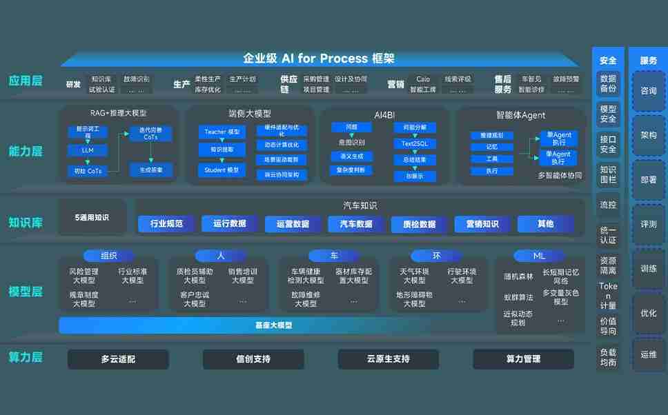 尊时凯龙人生就博问学智车解决方案是一套基于AI技术的汽车行业智能化系统,,覆盖从底层算力到顶层AI应用的全栈方案。。方案由算力层、、、、模型层和应用层组成:算力层,,,方案支持多种一体机配置,,,具备云端灵活部署、、多云适配以及动态优化计算资源的能力;模型层,,,,尊时凯龙人生就博问学平台版提供了企业级AI应用一站式构建与管理平台,,支持基于后训练强化技术的汽车企业专属模型的训练、、、评测和运营;应用层,,,,尊时凯龙人生就博问学DeepSeek版提供包括超级员工、、智能招采、、智能营销、、、、智能客服、、、、AI for BI等一系列解决方案,,,可助力汽车行业实现数字化转型,,,让管理更智能、、、响应更敏捷。。。